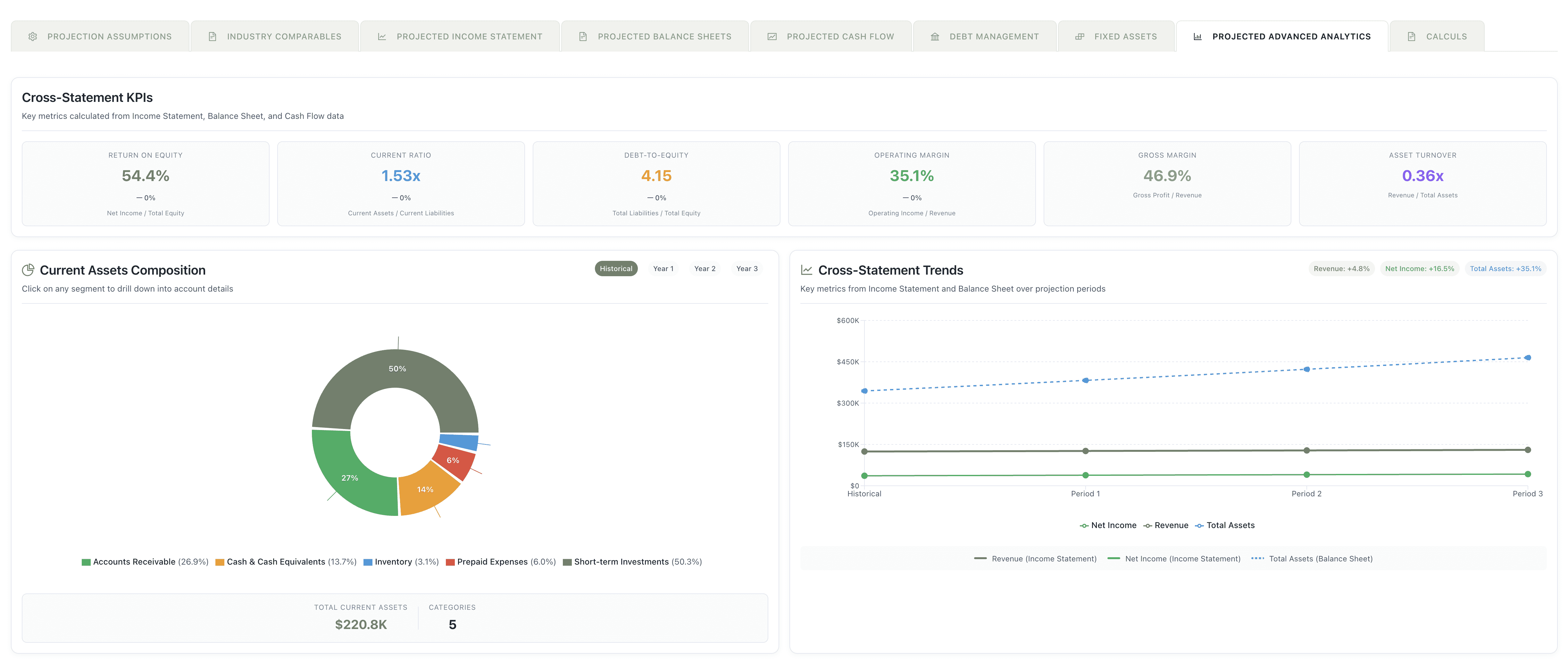 Projections périodiques. Clervue convertit vos balances de vérification en états financiers projetés, ajuste les leviers (croissance, marges, CAPEX, dette) et suit les KPI clés (BAIIA, marge nette, liquidité) avec collaboration et exports PDF/Excel.